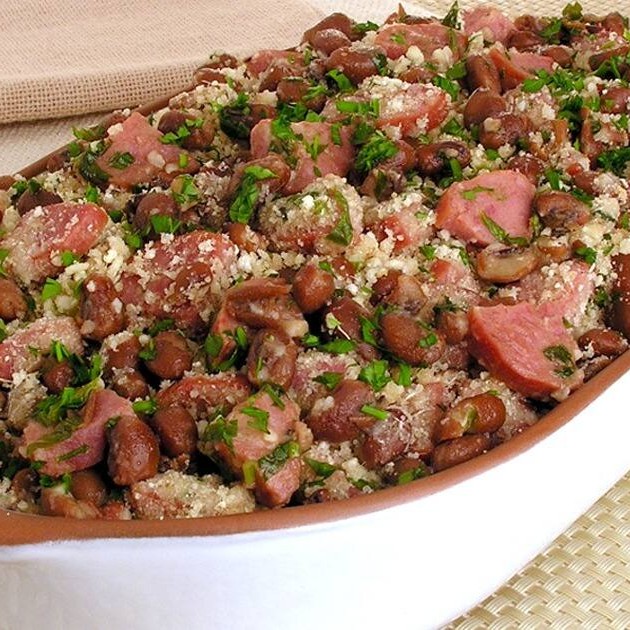Farofa da Casa preparada a partir da farinha de mandioca.