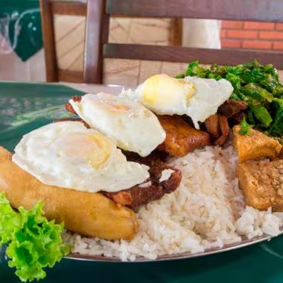 E como explicar o sabor deste prato completo com arroz branco, tutu de feijão, ovo, torresmo, bisteca, linguiça, banana à milanesa e couve manteiga.