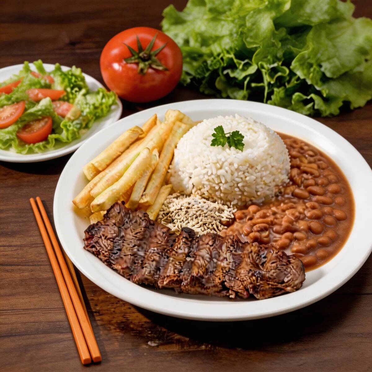 Feijão fraldinha , arroz, carne seca desfiada , queijo coalho e Picanha grelhada na Brasa.