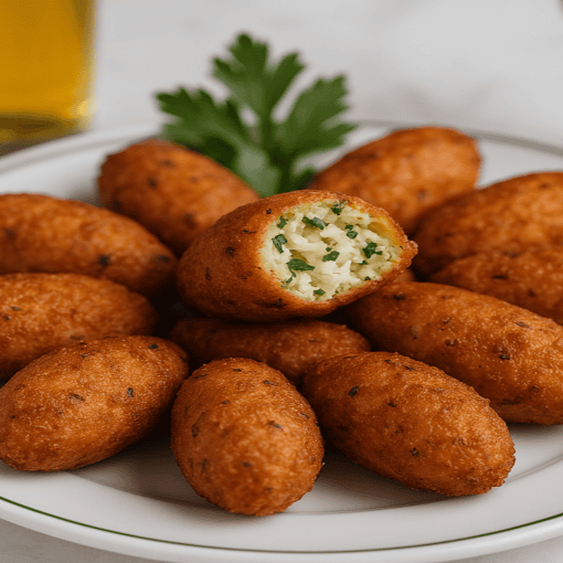 Delicioso bolinho artesanal feito com bacalhau, farinha de milho, polvilho e batata. Porção com 15 unidades e acompanha molho rose.
