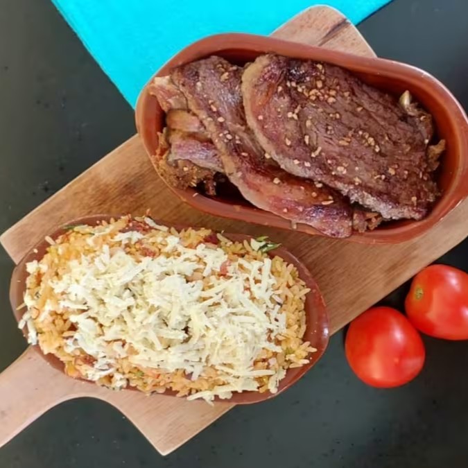 Baião de dois com Picanha grelhada na Brasa