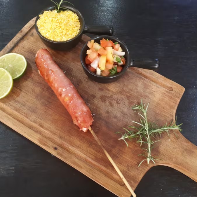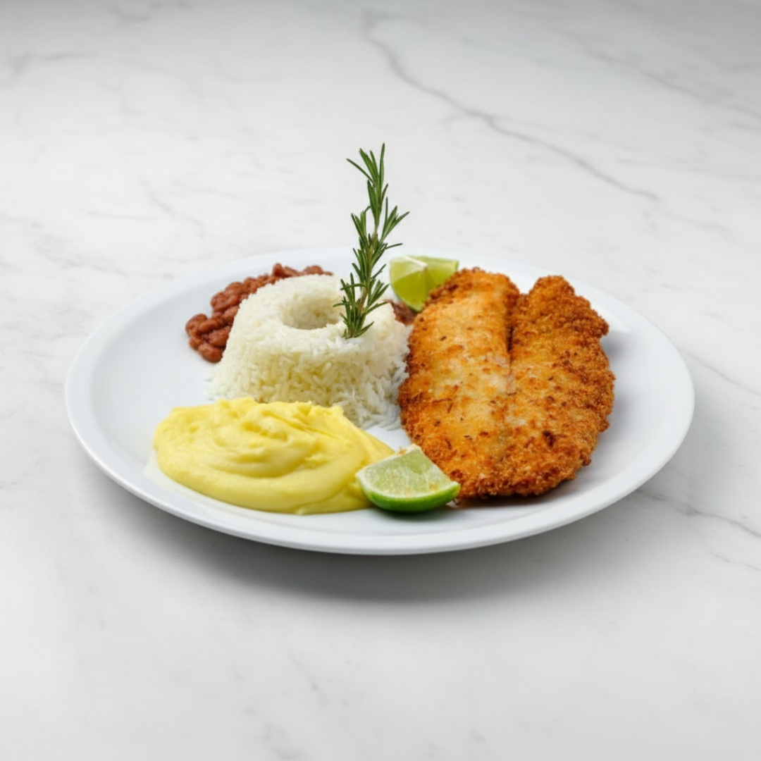 Este prato típico representando as regiões Norte e Nordeste é delicioso e em seus acompanhamentos temos, arroz, feijão tropeiro, carne de sol, 2 bananas à milanesa, 2 ovos, torresmo, calabresa, mandioca e uma couve manteiga refogadinha.