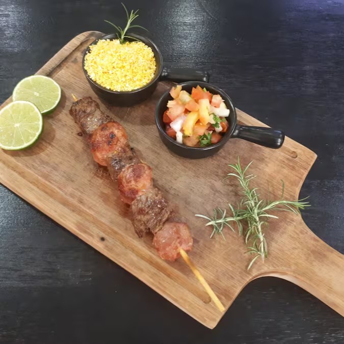 Baião de dois com Churrasco Misto assado na brasa