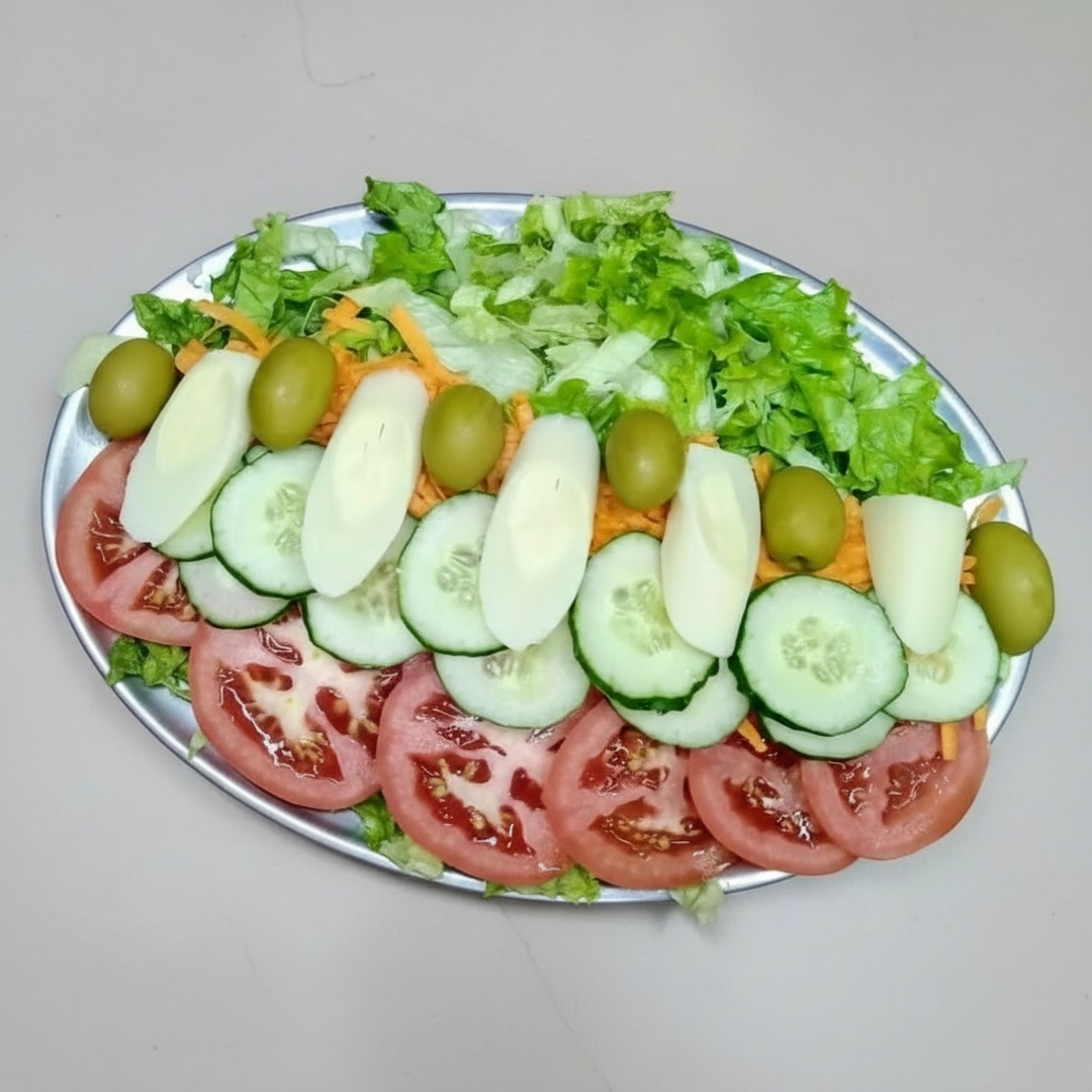 Para quem deseja uma alimentação mais leve e saudável, nossa salada é preparada com produtos frescos e selecionados como, alface, tomate, pepino, cenoura ralada, palmito, e azeitonas.