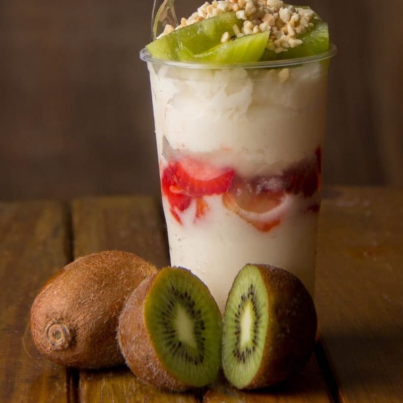 Delicioso Found de frutas selecionadas e frescas com 100ML de chocolate ao Leite Garoto