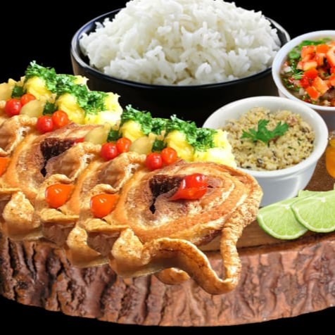 Composição: 04 Torresmo Quite + 750g Arroz + 2 porções de Vinagrete + 150g Farofa + 220g Macaxeira Cozida + 3 Geleia de Pimenta + 3 Limões *Imagem Ilustrativa Serve até 03 pessoas #tags: oferta - promoção - desconto - petisco - tira-gosto