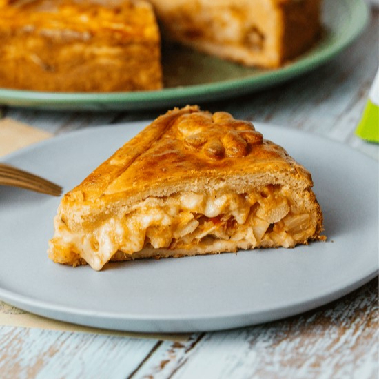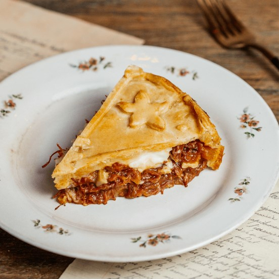 Nossa Fantástica Torta de Carne-Seca é feita com molho de tomate e tomate picado, cebola ralada, salsinha fresca, azeitona, carne-seca desfiada, uma generosa camada de requeijão e a nossa exclusiva massa artesanal!