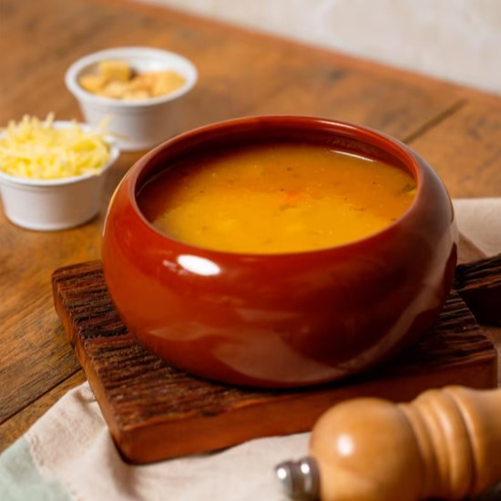 Nosso Fantástico – e delicioso – Caldo de Legumes é feito com mandioquinha, batata, cenoura e abobrinha, temperado com cebola, alho e cheiro verde!