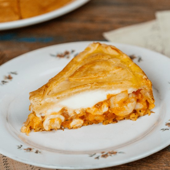 Nossa Fantástica Torta de Camarão leva camarões extragrandes selecionados, molho de tomate, tomate picado, salsinha fresca, azeitona e requeijão cremoso, além da nossa exclusiva massa artesanal que você já conhece. Peso Fatia: 180g*