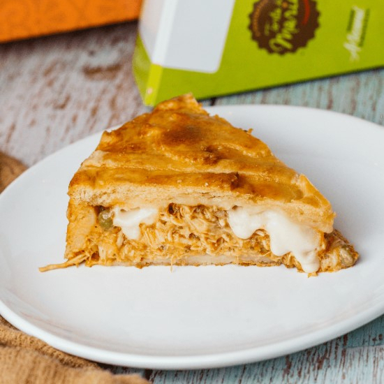 Nossa Fantástica – e mais vendida – Torta de Frango leva uma camada generosa de requeijão cremoso, peito de frango desfiado, molho de tomate e tomate picado, azeitona, ervilha, cenoura e salsinha! Tudo isso, envolto pela nossa exclusiva e deliciosa massa artesanal! Peso Fatia: 180g*