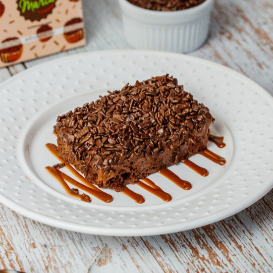 Nosso Fantástico Bolo de Brigadeiro – mais conhecido como Brigadeirão – é feito à base de massa de pão de ló de chocolate, umedecido com uma calda gelada de leite e leite condensado, recheado com o nosso supercremoso e delicioso brigadeirão de panela! Peso Minibolo: 100g*
