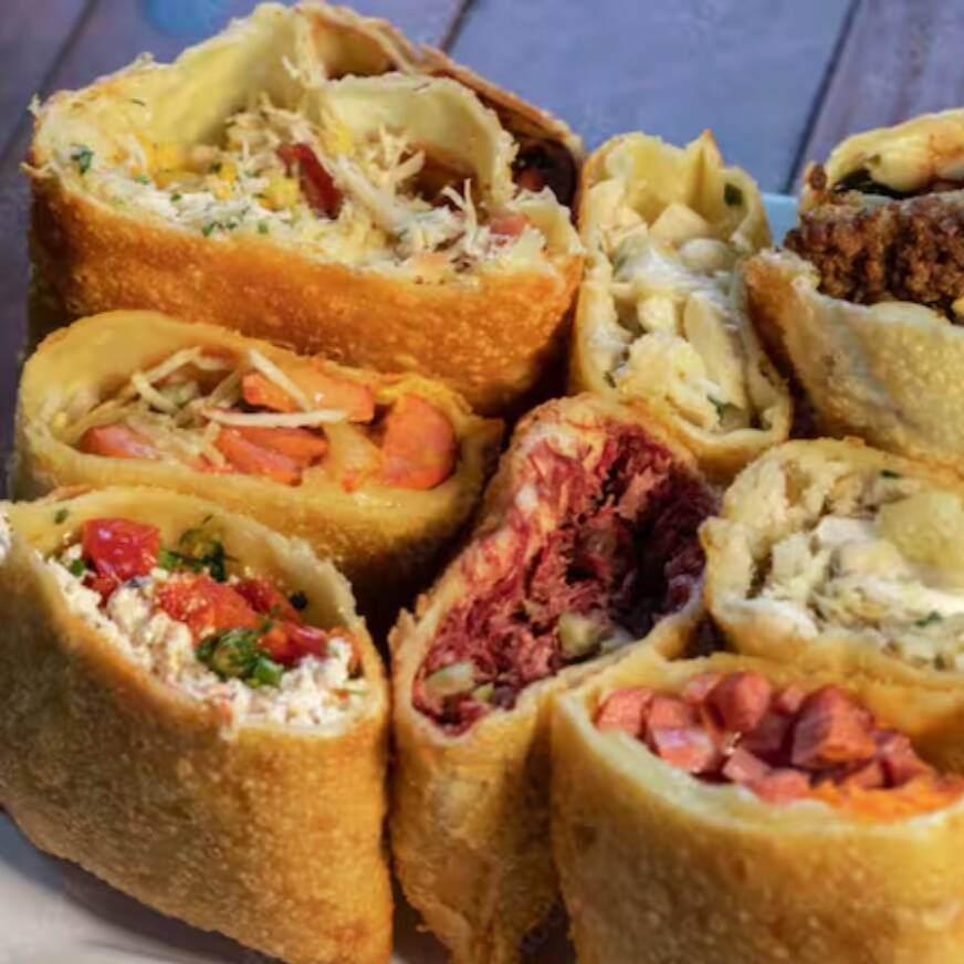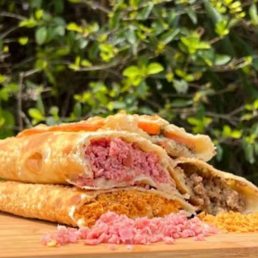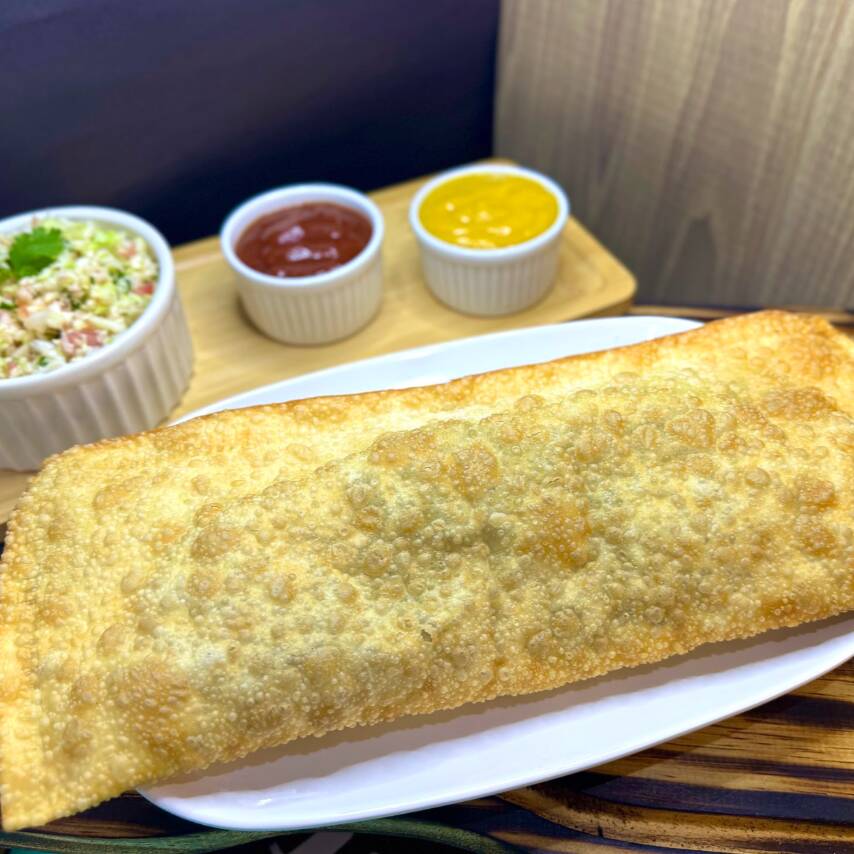 Pastel crocante gigantesco de 30 cm lotado de muito recheio escolha o seu sabor e se delicie com o melhor pastel crocante artesanal da cidade