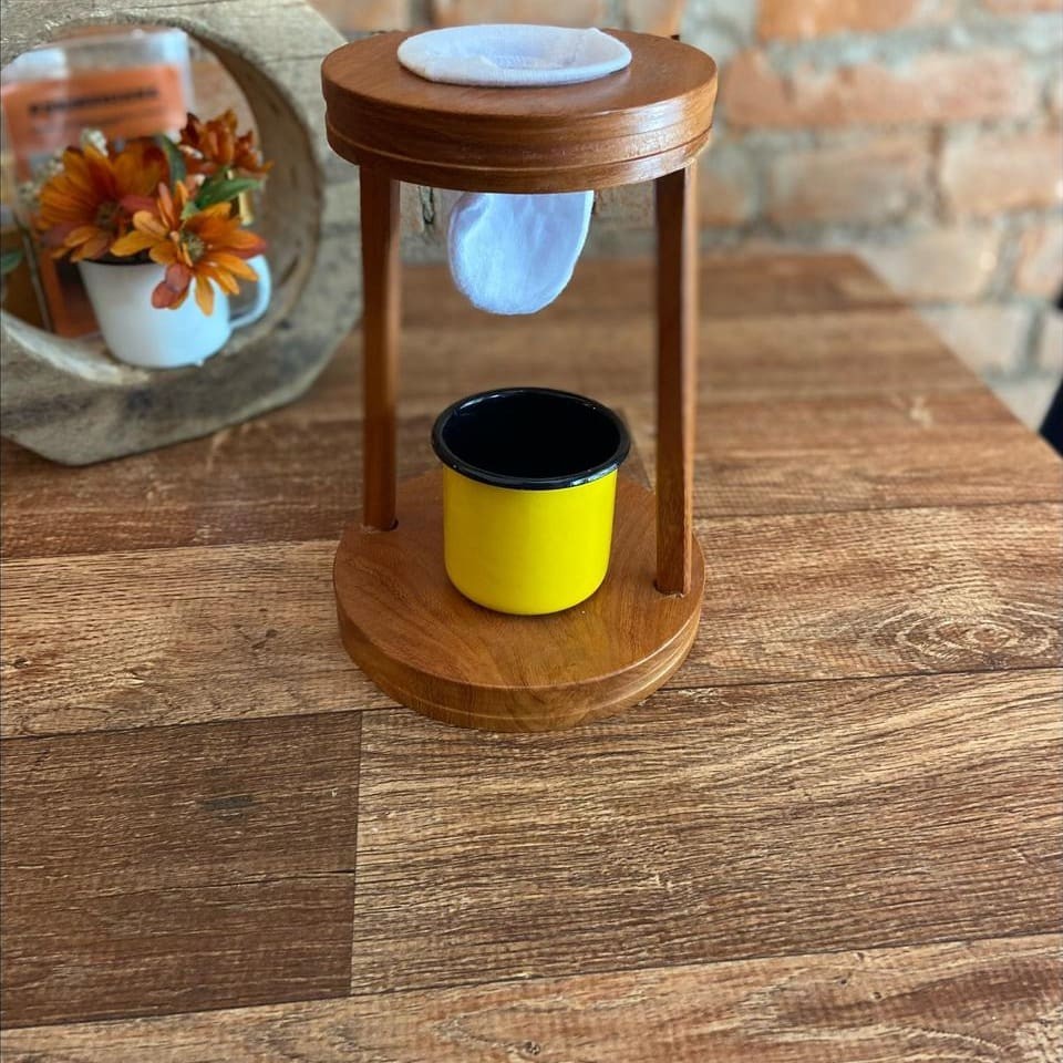 Coador De Café Individual De Madeira Delicie-se todos os dias com o seu café de dar água na boca e pronto muito mais rápido com o nosso Suporte Coador de Café, ele facilita o seu Dia a Dia proporcionado um cafezinho fresco, quente, na medida certa e com aquele sabor caseiro incrível.