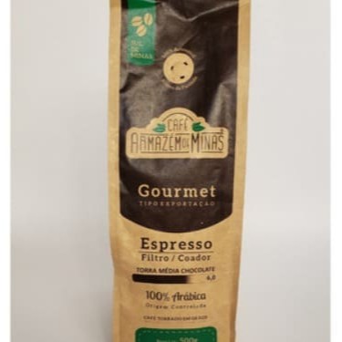 Café Armazém de Minas, 100% artesanal, torra sem adição de água, Espresso. Características: Bourbon amarelo,bebeida mole, acidez média e equilibrada, corpo intenso, retrogosto prolongado e sabor marcante.