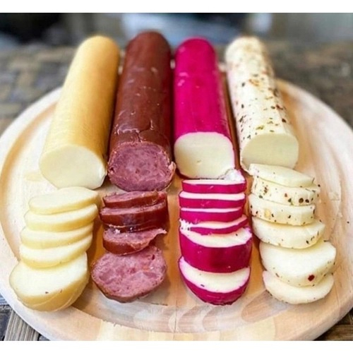 Queijo Provoleto com Lombo Defumado Combinação perfeita para servir de entrada, petisco possuindo 3 tipos de Queijos.Provolone Natural Temperado, Provolone Defumado, Provolone Rosa e Lombinho Defumado.Este Queijo é Produzido na Região da Serra Canastra Provolone Temperado Provolone Vermelho e Lombo defumando.