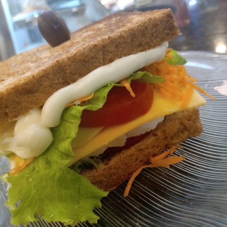 Salame italiano,provolone,alface,tomate e maionese no pão de forma intergral.