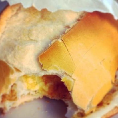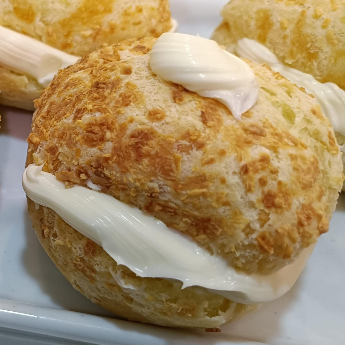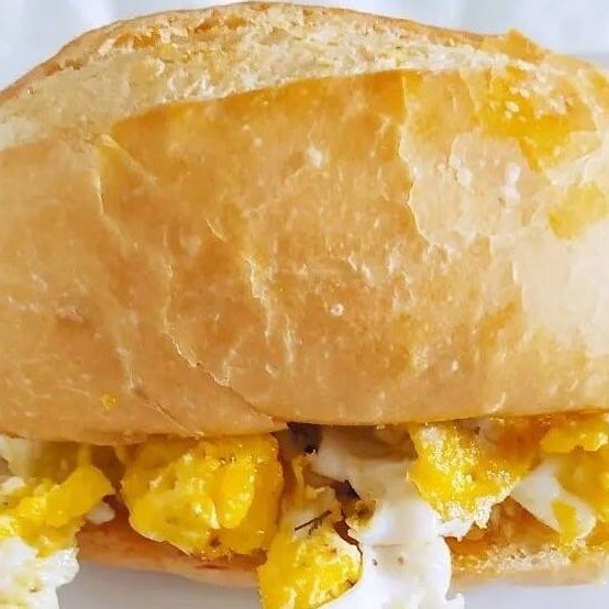 Bisnaga doce com manteiga na chapa ,com requeijão na saída.