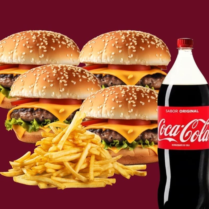 4 X-Salada 1 porção de batata frita pequena 1 Coca cola 2 litros
