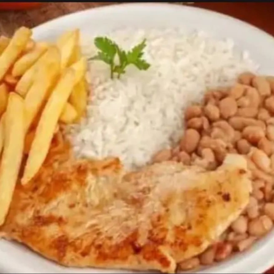 Acompanha arroz branquinho, feijão fresquinho e batata frita crocante.