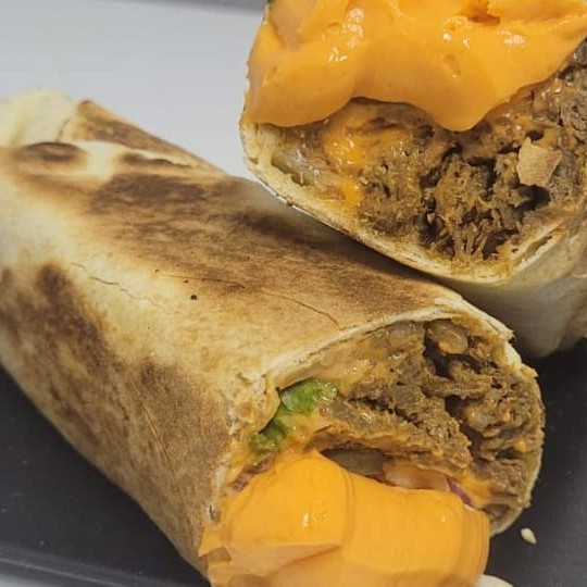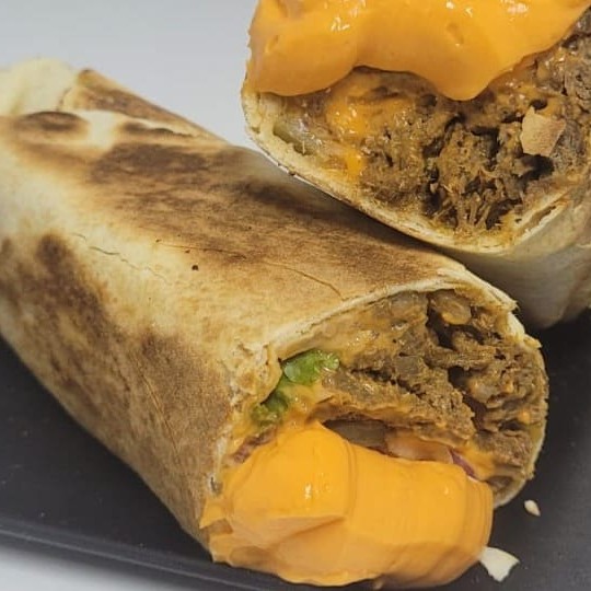 Shawarma de Contra Filé com Cheddar: carne suculenta de contra filé, Cheddar Cremoso e vegetais frescos à sua escolha!