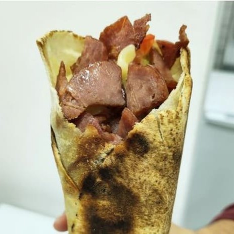 Shawarma de Calabresa com Catupiry Original: Calabresa fatiada, Catupiry Original e vegetais frescos à sua escolha!