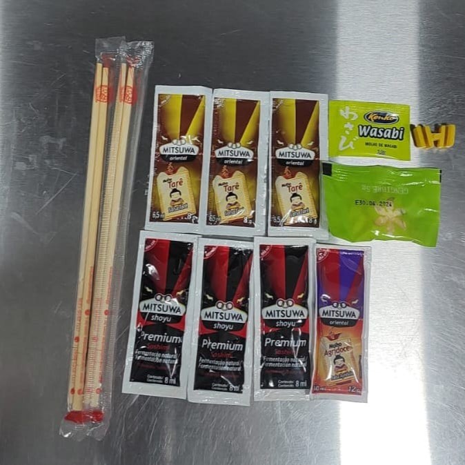 4 tarê 4 shoyu 2 hashi 1 Gengibre 1 wasabi 1 adptado 1 molho agridoce