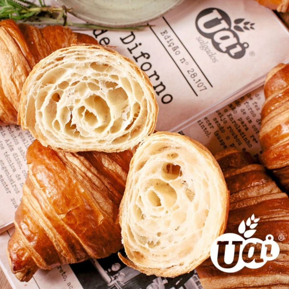 Produto congelado, versátil e folhado, com textura leve e amanteigada. Ideal para personalizar com recheios doces ou salgados. Vendido em embalagem individual, é prático e fica pronto em minutos após aquecer — perfeito para lanches rápidos ou café da manhã.
