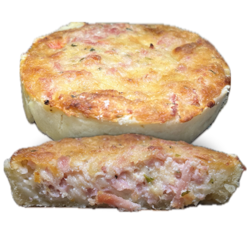 Massa folhada crocante e amanteigada, recheada com presunto e queijo derretido 😋. Produto congelado, pronto para aquecer no forno ou airfryer.
