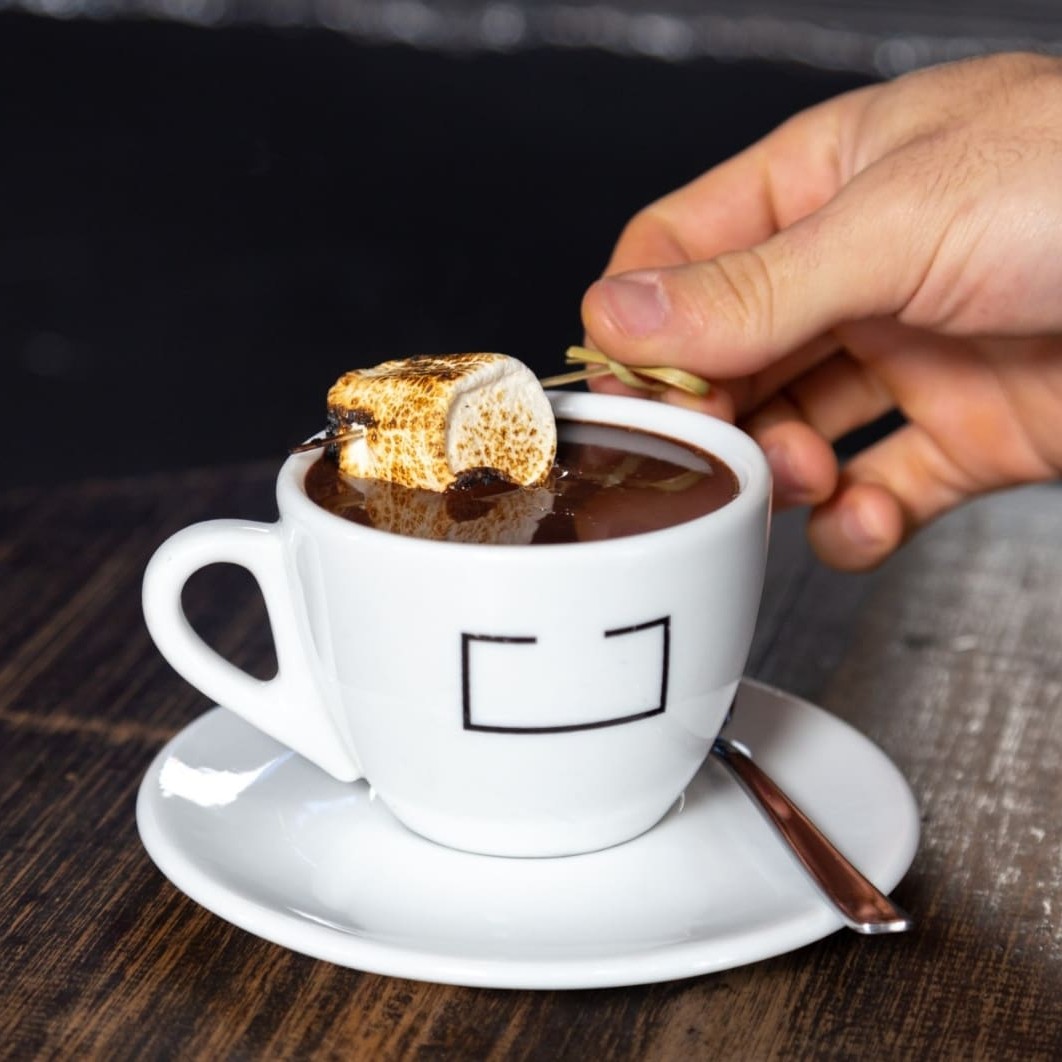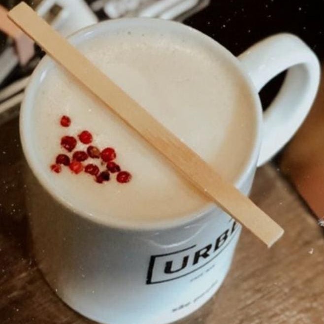 Mix de especiarias, xarope de cumaru e leite vegano de aveia.