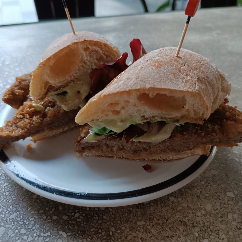 Bife milanesa de filet Mignon, folhas, maionese de wasabi na ciabatta.