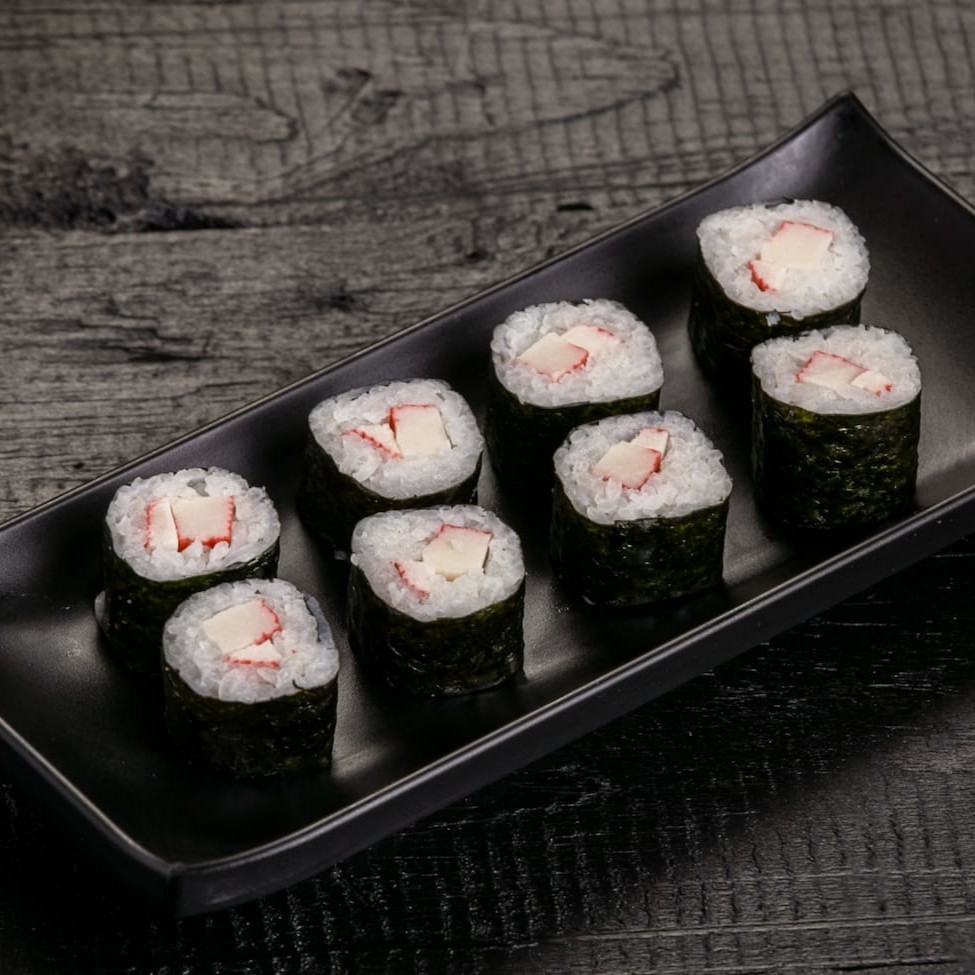 Alga marinha enroladdo no arroz e kani. Atenção! Sem alteração.... Deixe sua avaliaçao no app sobre este pedido, sua 5 estrela vai ajudar bastante;)