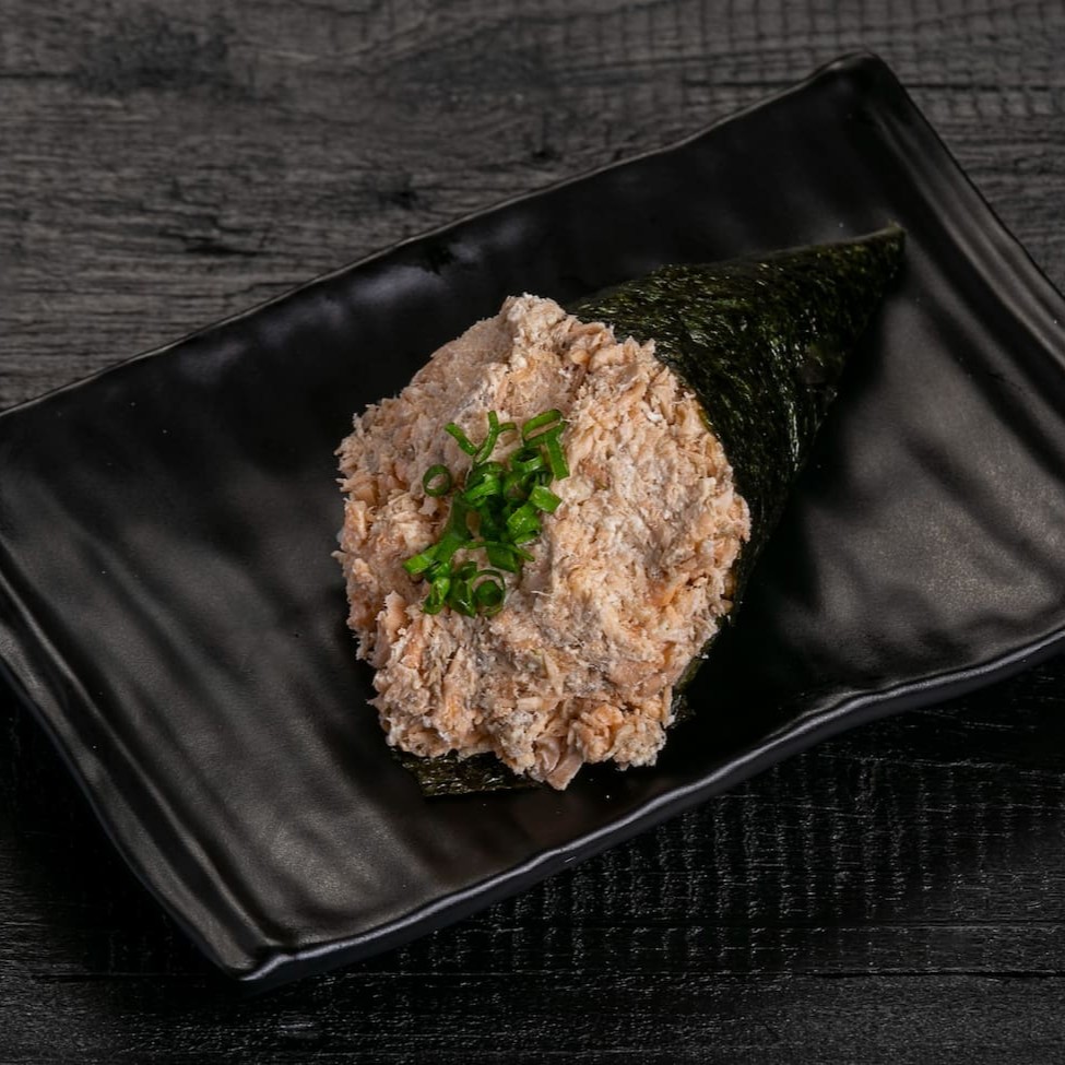 Salmão batido ou em cubos com maionese e cebolinha. Atenção! Sem alteração.... Deixe sua avaliaçao no app sobre este pedido, sua 5 estrela vai ajudar bastante;)
