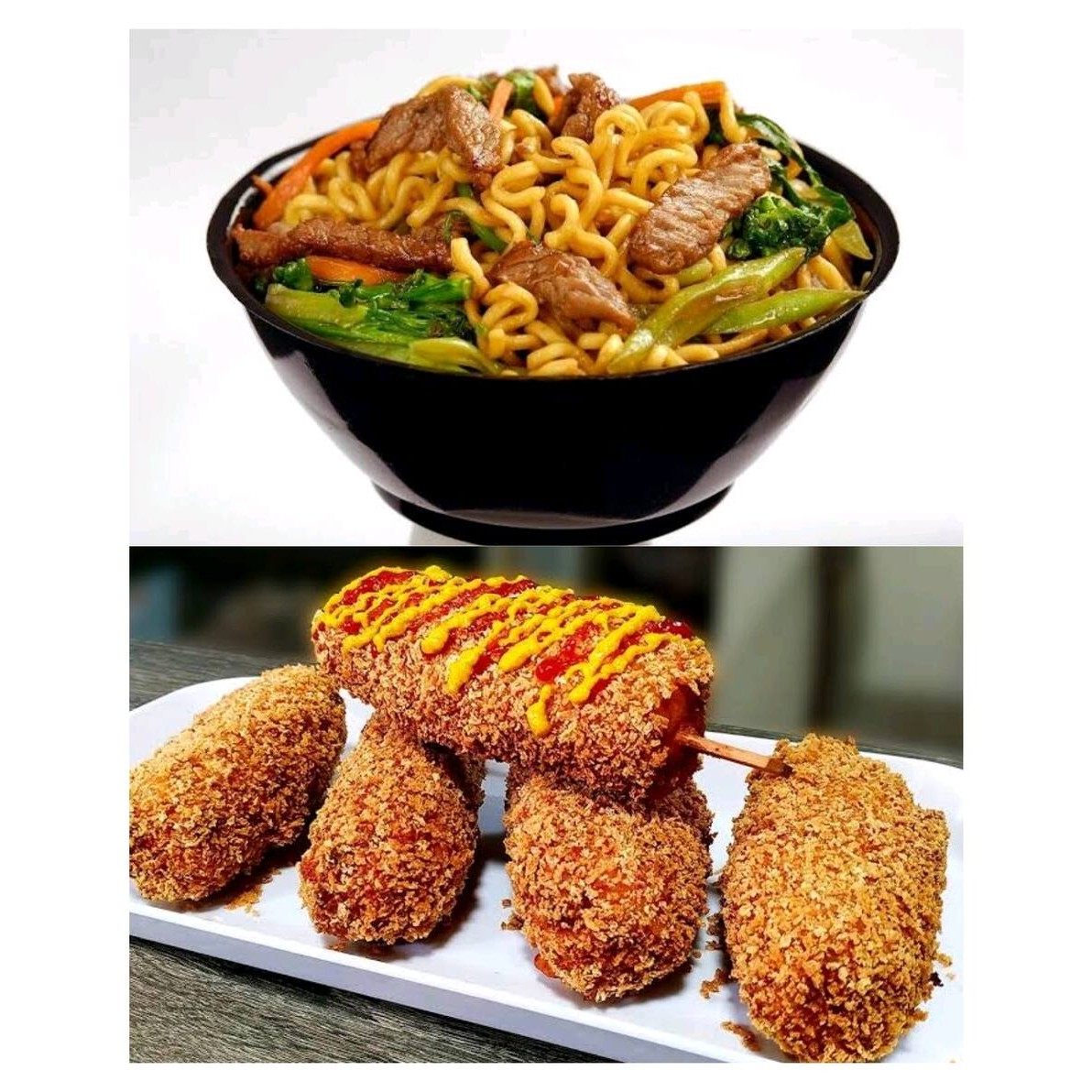 Yakissoba Carne,frango,couver-flor,,brócolis,cenoura,repolho,acelga,champignon,macarrão. 3 Guioza bovina ou suina