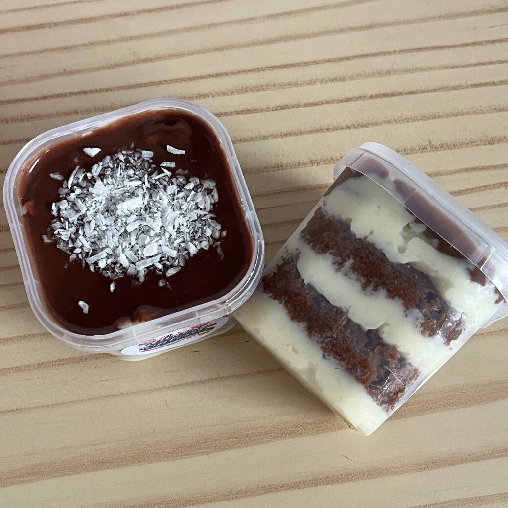 Camadas de bolo de chocolate super fofinho e molhadinho intercalados com recheio de beijinho