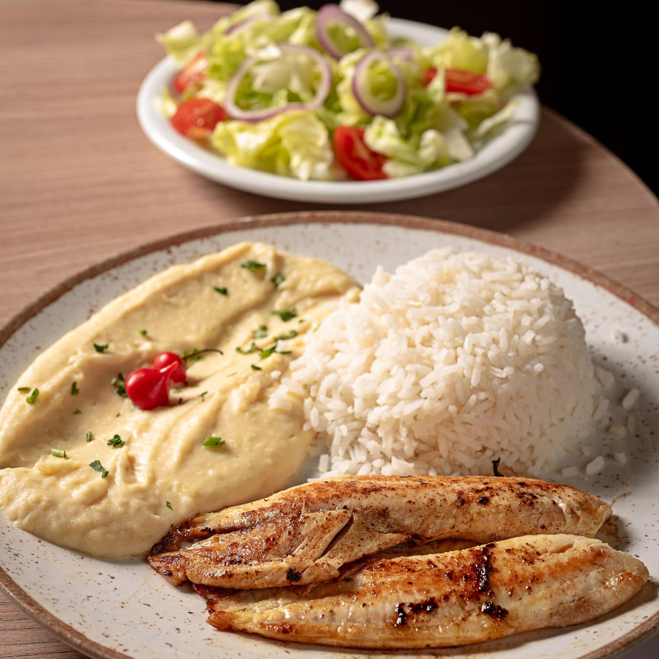 Acompanha batata rústica sauté e salada.