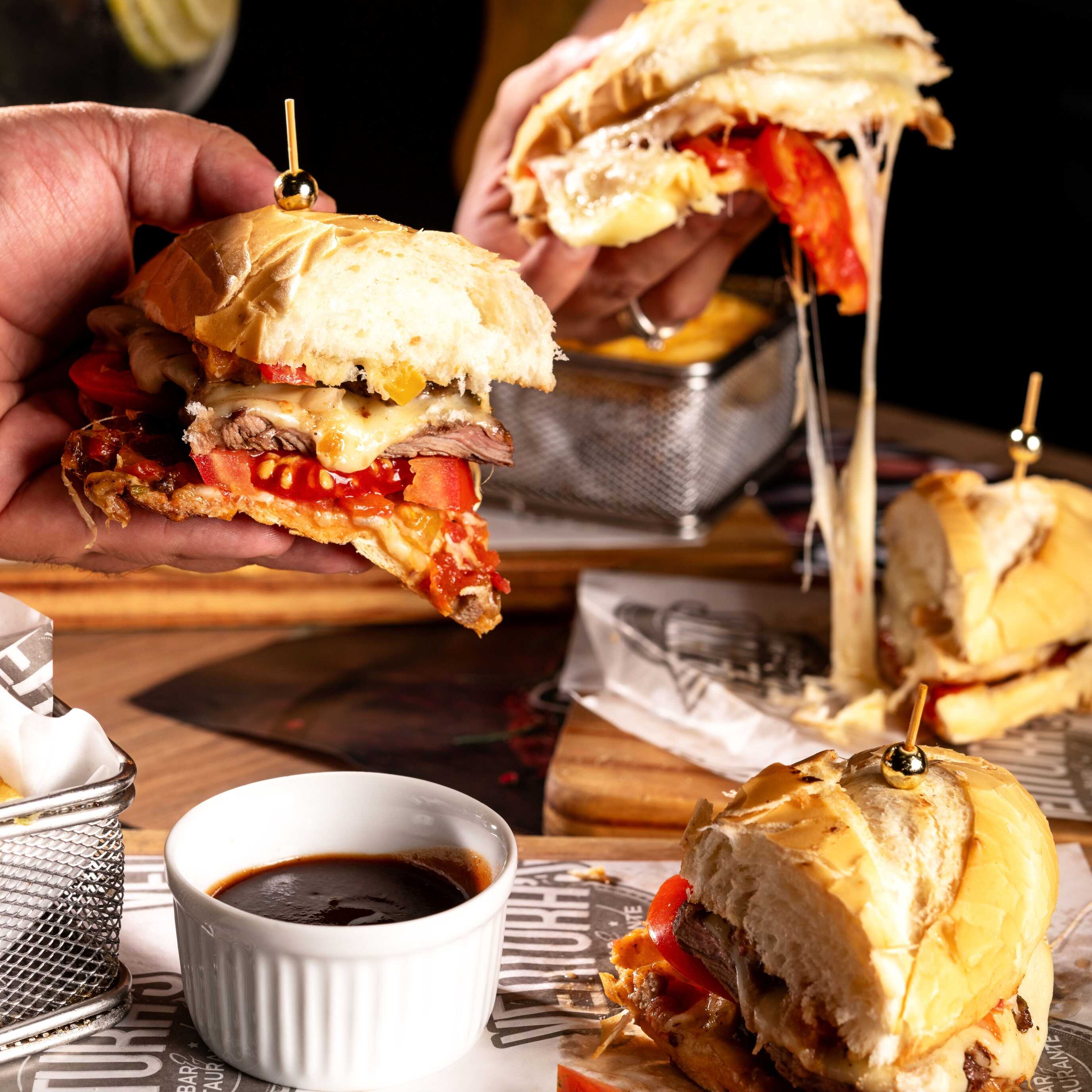 Mini baguete, iscas de contra filé, vinagrete e queijo prato. Acompanha maionese da casa.