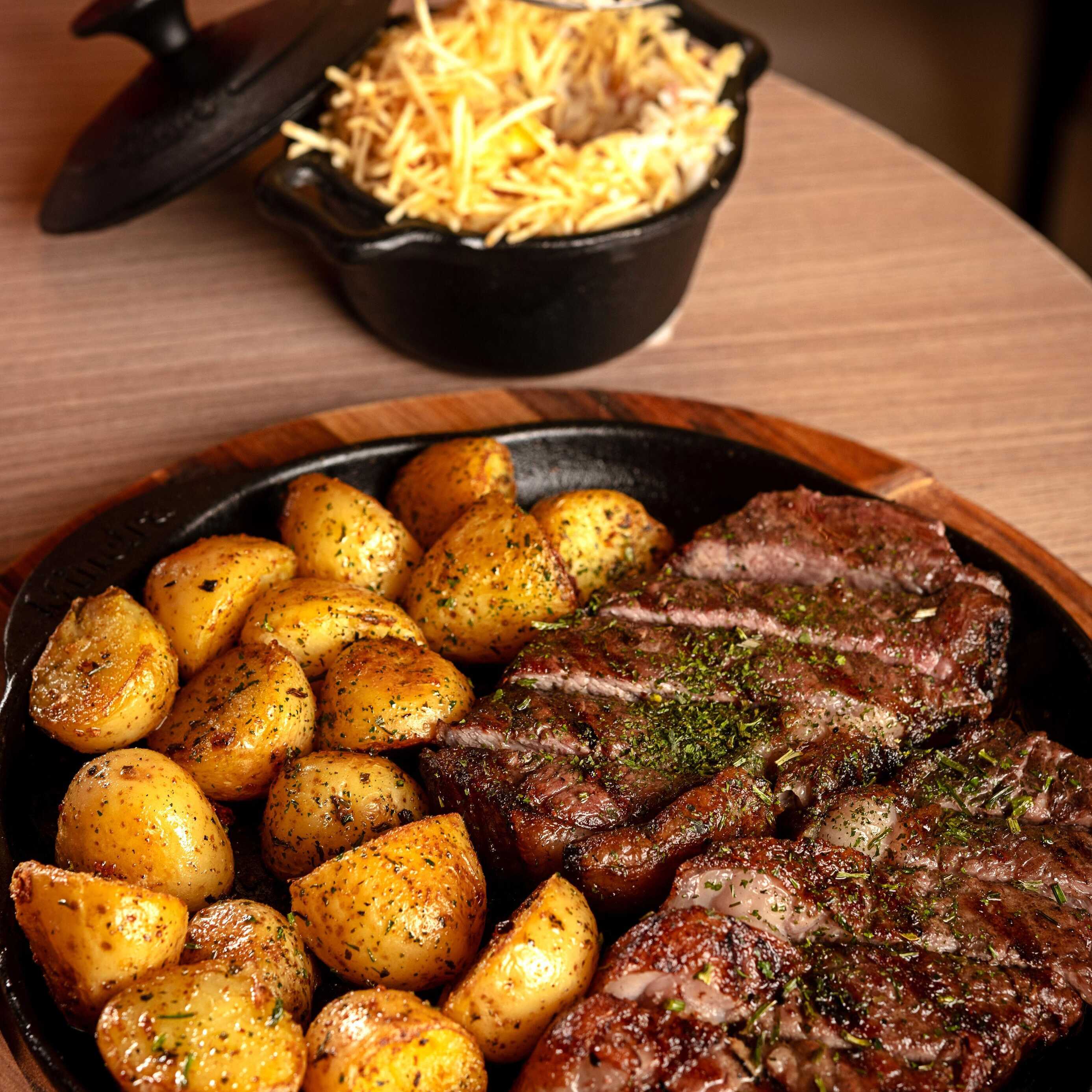 Acompanha batata rústica e aligot.