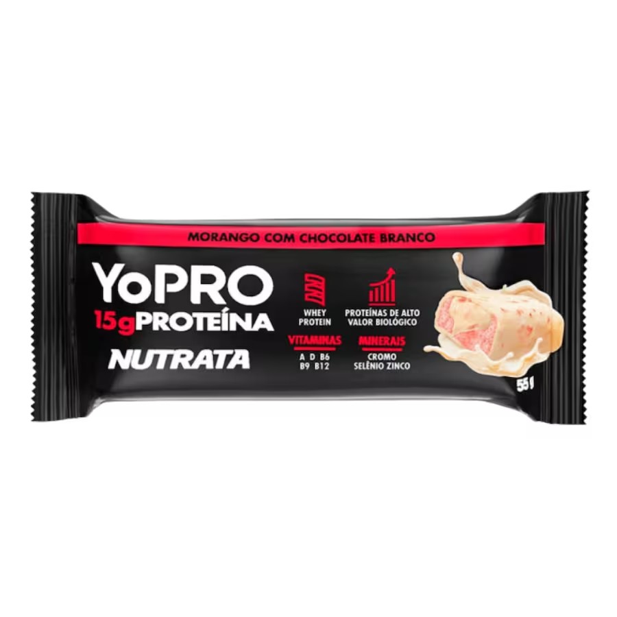 Barra De Proteína Nutrata Yopro Sabor Morango E Chocolate Branco 55g
