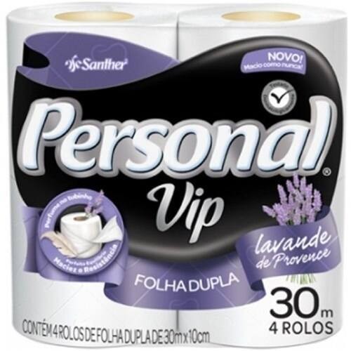 Papel Higiênico Personal Vip 30m Folha Dupla Lavanda Pacote 4 Rolos