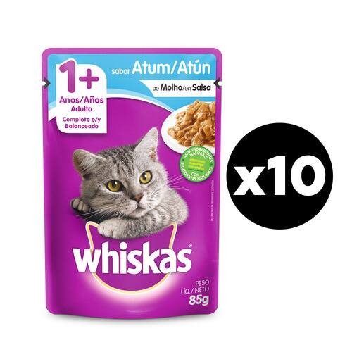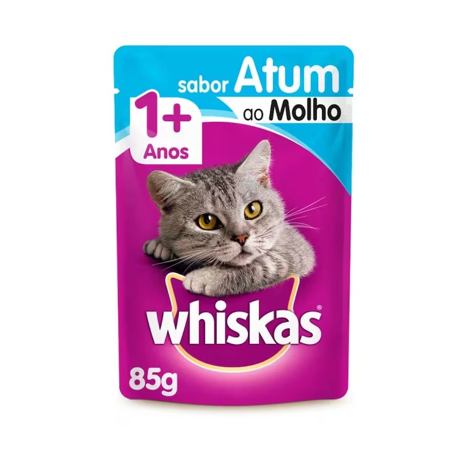 Ração Úmida Para Gatos Adultos Sabor Atum Ao Molho Whiskas 85g