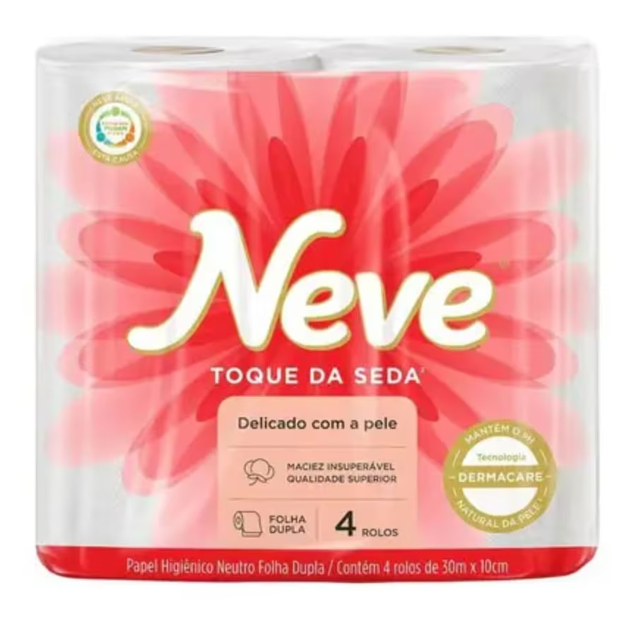 Papel Higiênico Neve Toque De Seda Folha Dupla 4 Rolos 30m