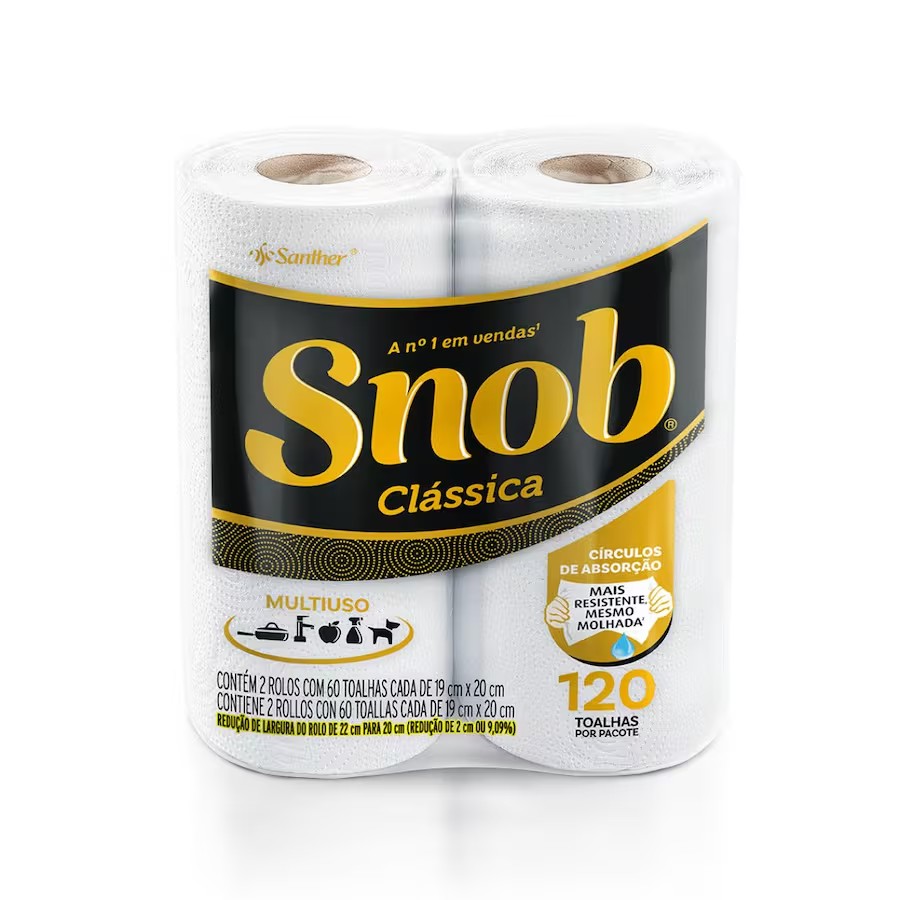 Toalha De Papel Folha Dupla Clássica 19x20cm Snob 2un