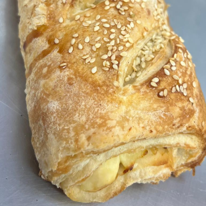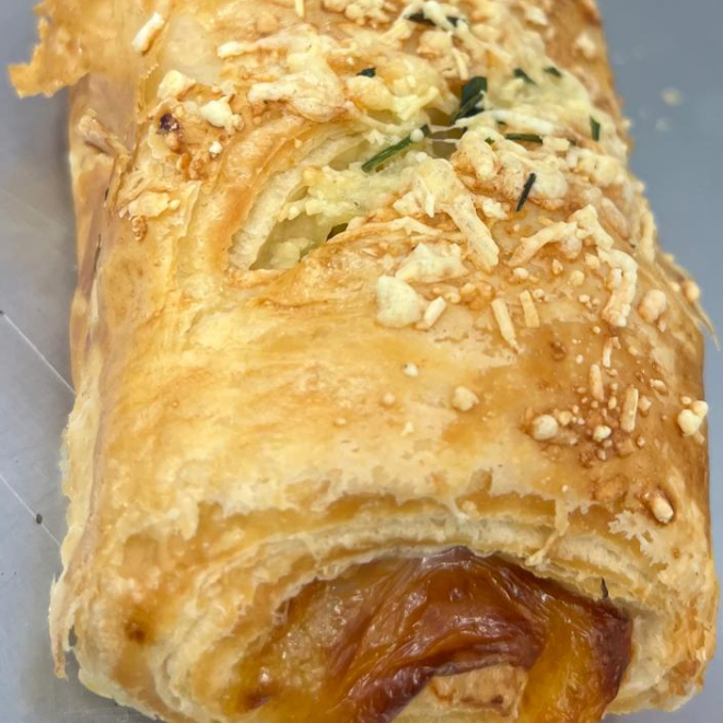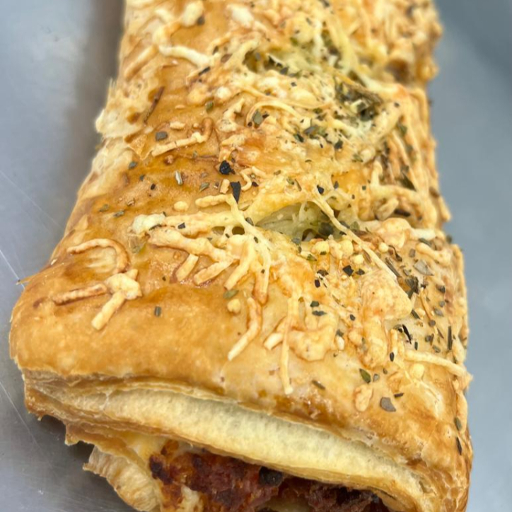 FOLHADO DE CALABRESA - UN (assado com massa folhada recheada com calabresa defumada moída coberto com queijo parmesão ralado e orégano) peso aproximado 115gr