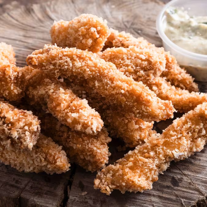 Deliciosa porção de tiras de Frango empanada, acompanha molho a sua escolha.