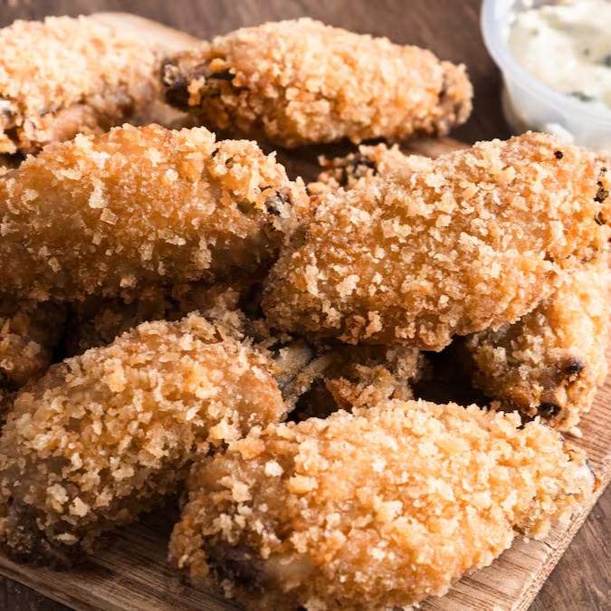 Deliciosa porção de Tulipa de Frango empanada, (10 unidades), acompanha maionese especial da casa.