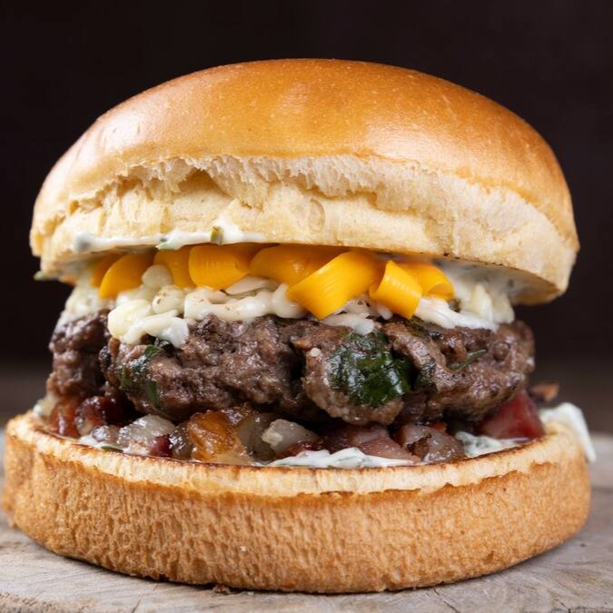 um delicioso burguer artesanal Blend com 130g, bacon, queijo mussarela, queijo cheddar, barbecue especial e maionese gourmet artesanal.