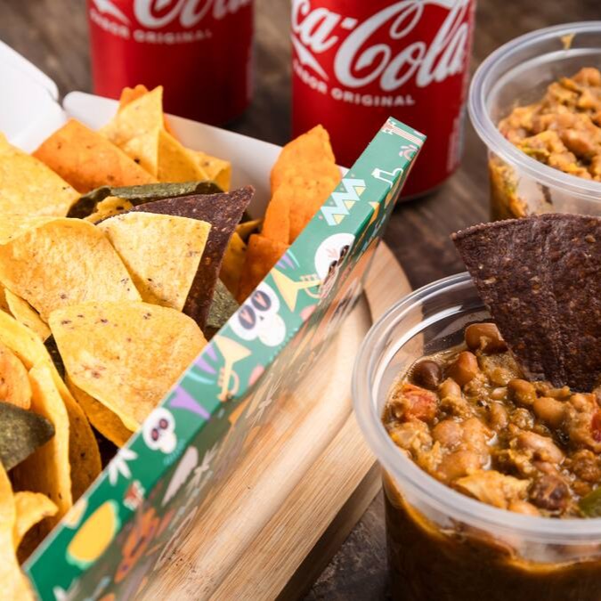 Porção de Nachos + Coca-Cola 2litros (combinação perfeita) - você ainda pode acrescentar os molhos típicos mexicanos, por apenas 3 reais cada.