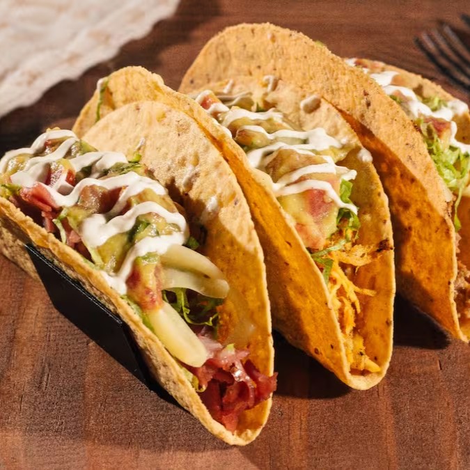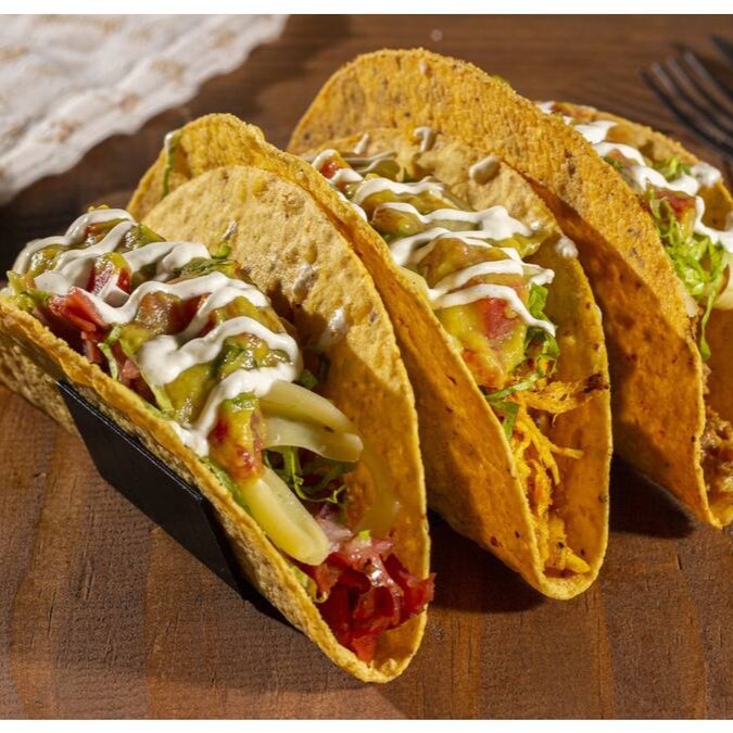 Uma tortilla de milho crocante moldada, recheadas com os molhos mais tradicionais (salsa mexicana, guacamole e sour cream.). Escolha seu recheio:
