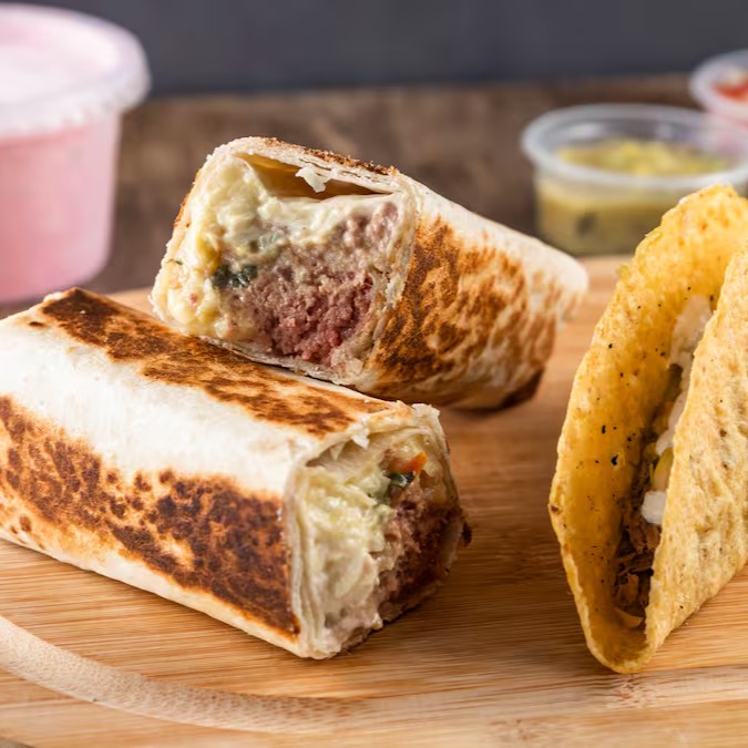 Monte seu combo - 01 Burrito (médio) a sua escolha, 01 Taco com recheios a sua escolha, 01 Sobremesa e 01 Bebida.