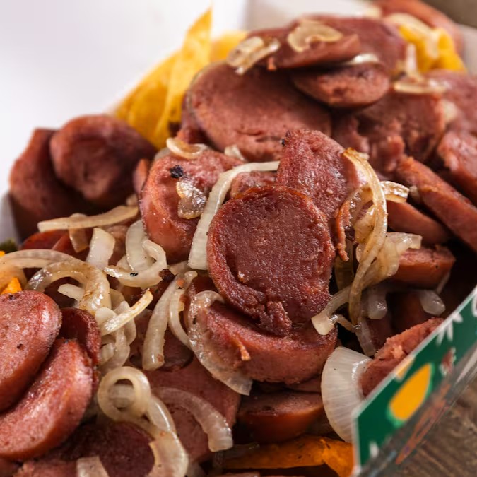 Deliciosa Calabresa cortadas em pequenas fatias com cebola levemente dourada.